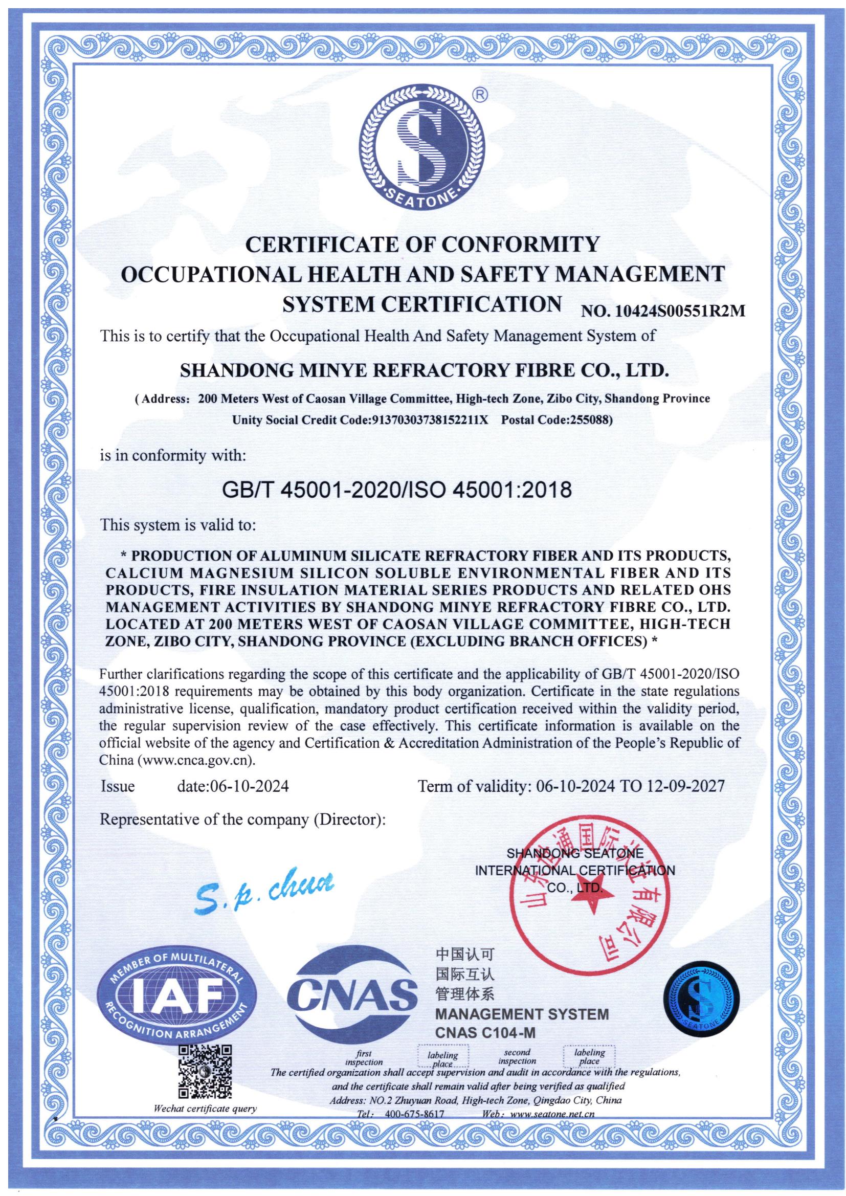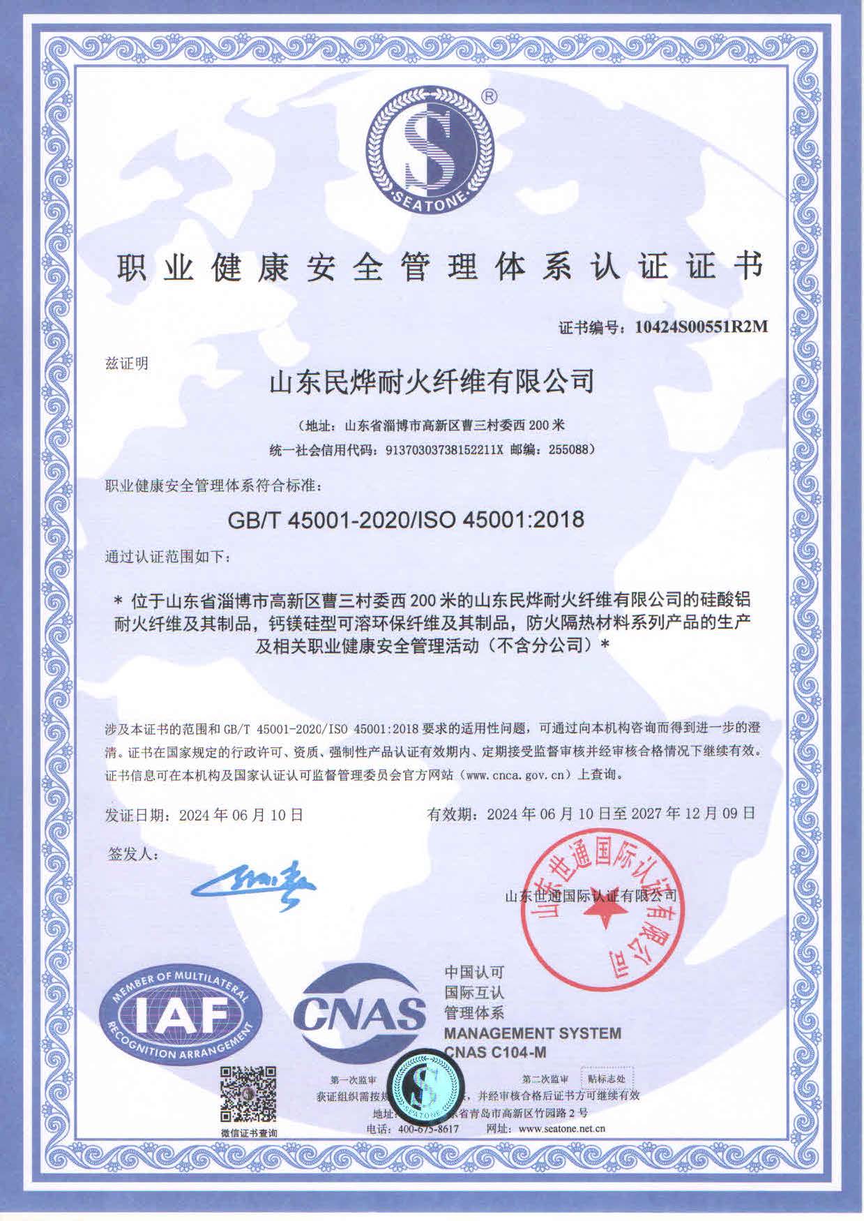 • 職業(yè)健康安全管理體系認(rèn)證證書(shū)