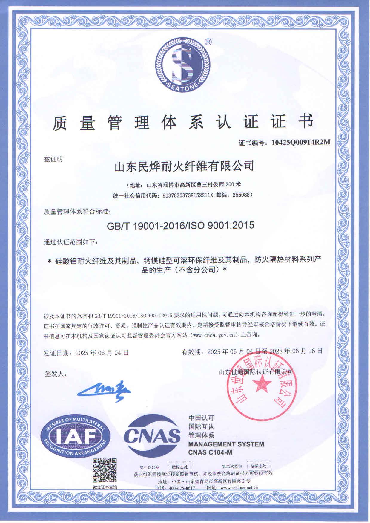 • 2025年質(zhì)量體系認(rèn)證證書(shū)